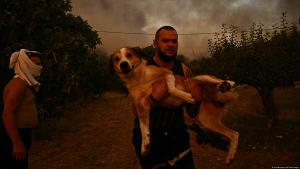 Житель города Патры спасает собаку от лесных пожаровФото: Aris Messinis/AFP/Getty Images