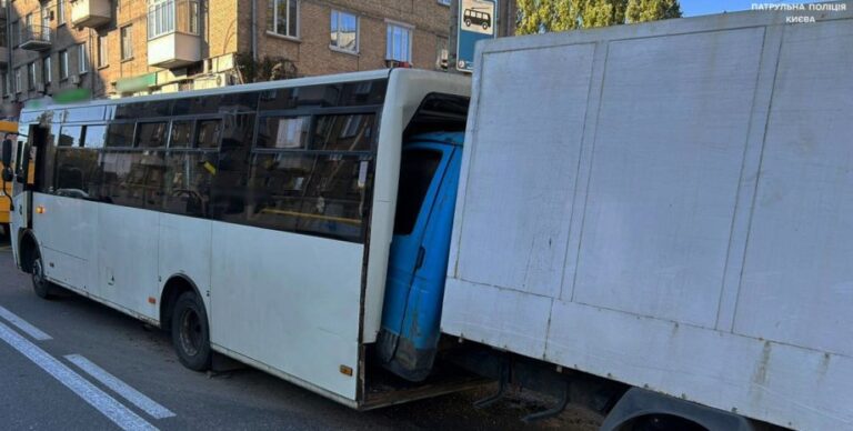 Жахлива ДТП у Києві: вантажівка «влетіла» в маршрутку, багато постраждалих (фото)