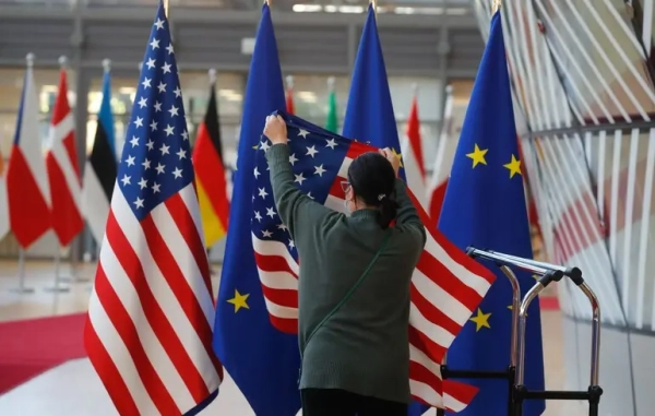 © EPA/STEPHANIE LECOCQ У відповідь на тарифи з боку Америки. Європейські чиновники планують затримати затвердження торгової угоди між Євросоюзом і Сполученими Штатами