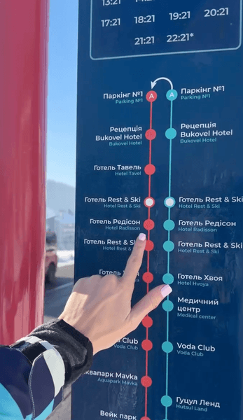 Друге – щогодинні автобуси безкоштовно. Головне – знайти місце зупинки. На них можна доїхати до підйомників, готелів, аквазони “Мавка”.