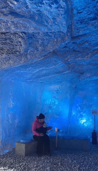 Спочатку – великий барвистий крижаний масив, де можливо безкоштовно зарядити телефон, зробити фотографії на згадку та насолодитися коктейлем у крижаній склянці.