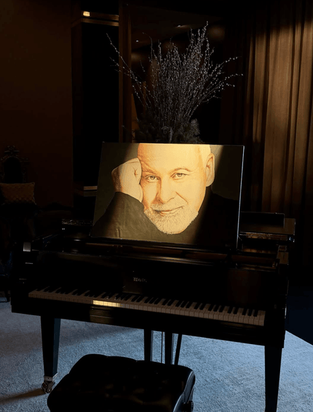 Виконавиця популярного хіта My Heart Will Go On розмістила в Instagram знімок роялю з фото Рене. Затемнене світло на фотографії дивовижно контрастувало зі смугою світла на замисленому обличчі обранця.