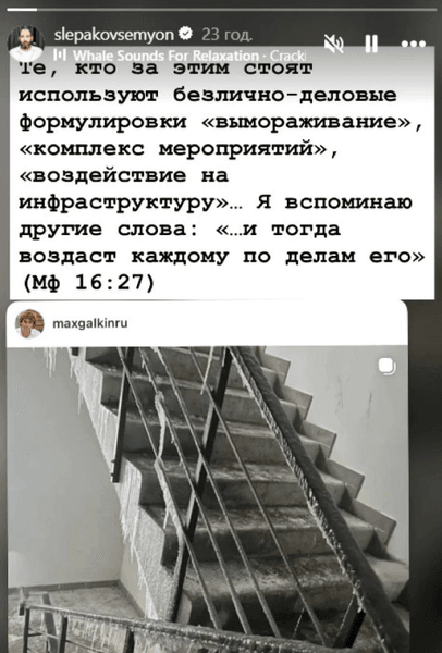 Комік поширив звернення Галкіна, додавши різкий коментар щодо цинізму російського керівництва. Він зауважив, що за офіційними фразами на зразок “вплив на інфраструктуру” ховається навмисне заморожування цілої країни.