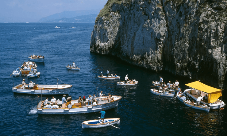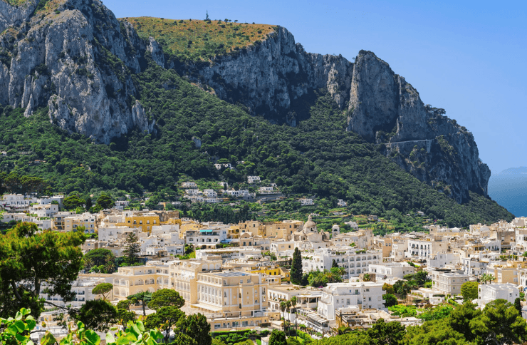 Капрі розташований неподалік Неаполя, куди можна дістатися на поромі приблизно за годину, що робить його популярним напрямком для одноденних відвідин.