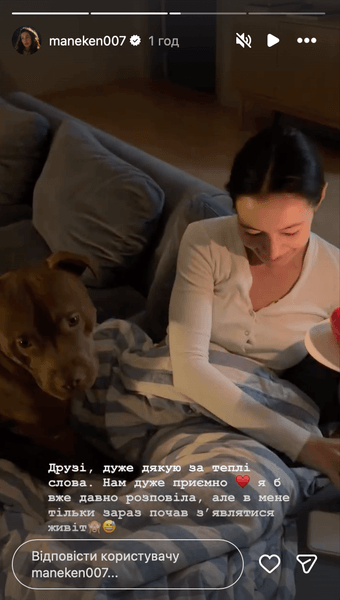 “Друзі, щиро дякую за ваші теплі слова. Нам дуже приємно. Я вже давно оголосила, але животик почав з’являтися лише зараз”, — поділилася Ксюша Манекен.