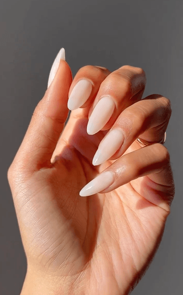 Попри те, що весна приносить тепліші дні, не дозвольте собі помилитися, прибираючи всі шари манікюру занадто швидко. Молочні відтінки кремового, білого або бежевого — це чудовий спосіб адаптуватися до природності.
