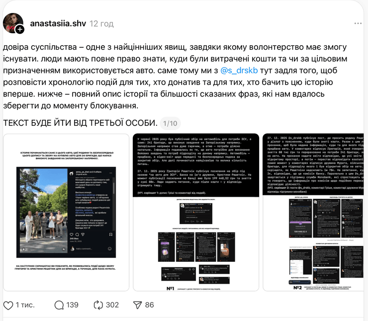 Решетніків звинуватили в непрозорості щодо збору Фото: Threads Що насправді