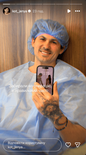 Женя Кот переніс операцію Фото: Instagram