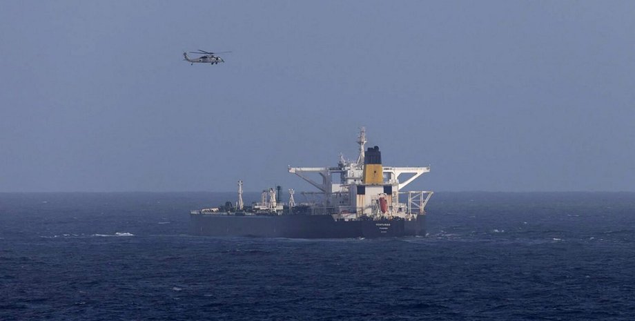 Команда старого нафтового танкера, за яким США пильнують в морі близько двох тижнів, зобразила на обшивці корабля примітивне зображення російського стягу. За словами американського посадовця, це спроба оголосити про наявність російського протекторату.