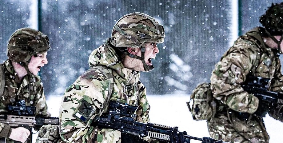 Британські солдати готуються до можливого збройного конфлікту з Російською Федерацією на тренувальному майданчику, що імітує район бойових дій на українській території. Навчання відбулись в місці, що відтворене як зруйноване міське середовище.