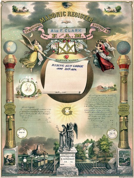 Сертифікат (диплом) майстра-масона, який видається після посвячення у 3-й ступінь Фото: Википедия