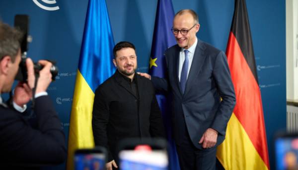 Зеленський і Мерц обговорили сумісні ініціативи з виготовлення зброї Фото 13.02.2026 19:54 Укрінформ Український Президент Володимир Зеленський зустрівся з Федеральним канцлером Німеччини Фрідріхом Мерцом, під час якої сторони розглянули спільні наміри з виробництва озброєння та дипломатичну діяльність.