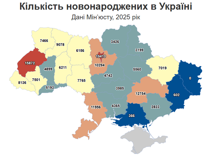 • Київ — 19 410 новонароджених, або 11,5%. Це лише на 1,5% менше, ніж у минулому році;