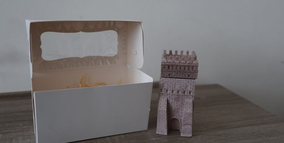 Згідно зі словами посадовців, йдеться про подарунковий комплект, який включає ароматизовану свічку в гіпсовій скульптурі, виконаній у вигляді в’їзної вежі Луцького замку, та упаковку.