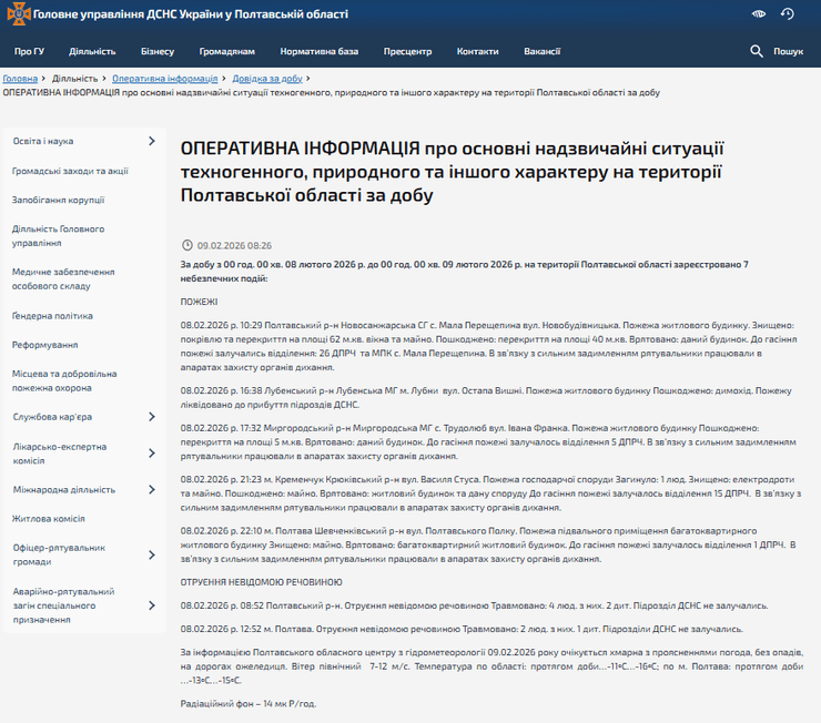 Відомості про випадки ураження невідомою субстанцією оприлюднило Головне управління ДС НС у Полтавській області 9 лютого у своєму оперативному звіті за минулу добу.