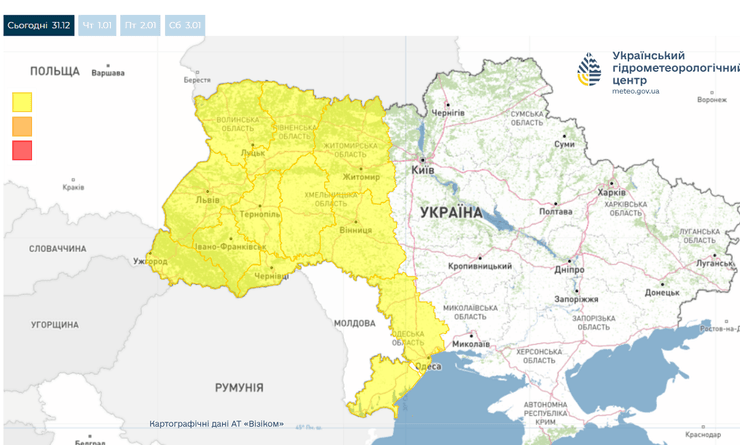 Також в Україні спостерігається холодна погода. За прогнозами метеорологів, у ніч на 1 січня температура повітря в деяких регіонах може суттєво впасти. У Карпатах очікується до -16 градусів.