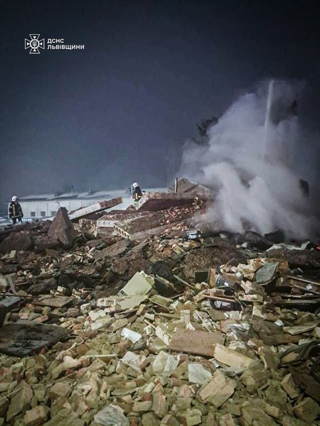 Внаслідок вибуху було зруйновано двоповерхову споруду. Про це донесли у Головному управлінні ДСНС у Львівській області.