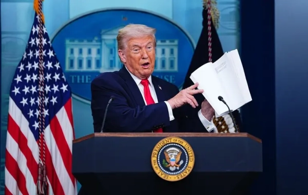 © EPA/AARON SCHWARTZ / POOL Після бесіди з головним посадовцем НАТО Марком Рютте американський президент Дональд Трамп зазначив, що не планує запроваджувати додаткові